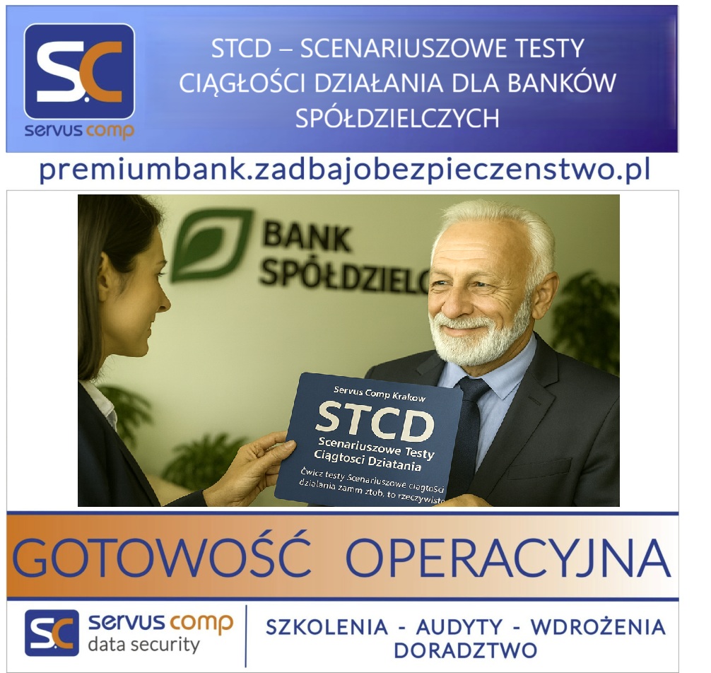 #STCD #ScenariuszoweTestyCiągłościDziałania #ServusCompKraków #CiągłośćDziałania #OdpornośćOperacyjna #TestyScenariuszowe #CyberOdporność #BezpieczeństwoICT #BankSpółdzielczy #ABI #KNF #DORA #EBA #ĆwiczZanimRzeczywistość #GotoweRozwiązania
