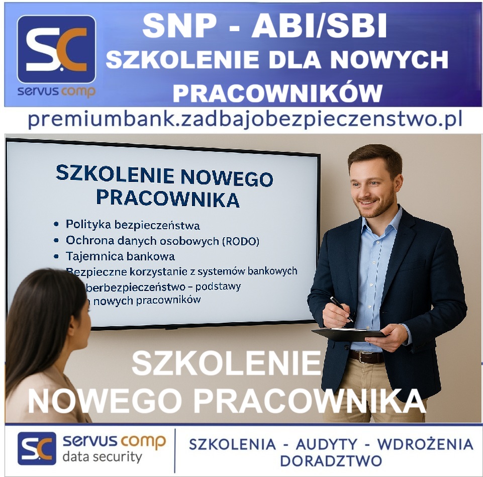 #ServusComp #SNP #SzkolenieNowegoPracownika #BankiSpółdzielcze#BezpieczeństwoInformacji #Cyberbezpieczeństwo #RODO #DORA#TajemnicaBankowa #OnboardingPracownika #ZgodnośćRegulacyjna
